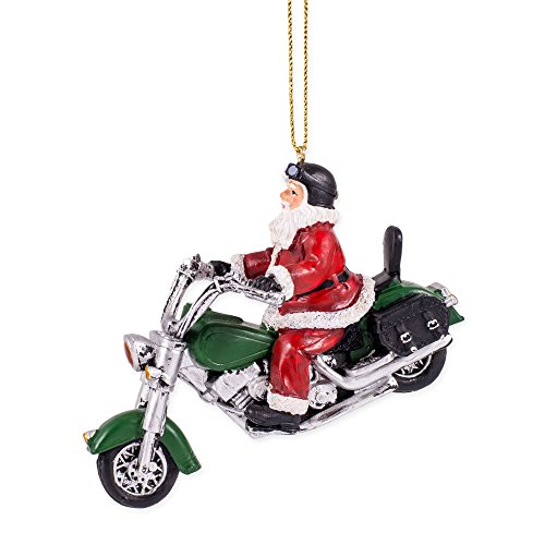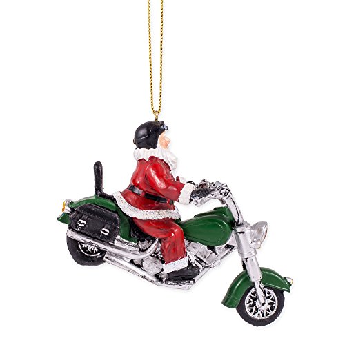 Santa Claus Riding Motorcycle 4" Resin Stone Christmas Ornament