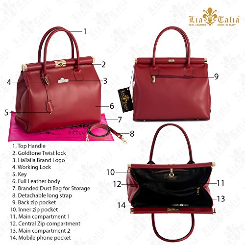 Laura by "LiaTalia" Womens Genuine Italian Leather Doctors Satchel Top Handle Shoulder Bag
