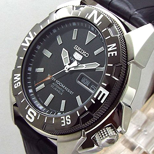 SEIKO 5Sports 다이버 간이 방위계 베젤 Made in JAPAN 세이코 파이브 스포츠 100m방수 가죽 벨트세트일본 세이코 정규 유통품 블랙 다이얼 SNZE81J