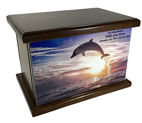 Cremation Urn, Wood funeral Urn, Dancing Dolphin Wooden Urn with custom personalization