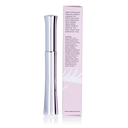 Our Infinit Dimension Mascara is perfect for your natural or extended lashes (single, cluster, or strip eyelashes) giving your eyes the extra POP they crave! The oil free formula is safe for contact lens wearers and suitable for sensitive eyes. For application on eyelash extensions apply the mascara to the tips of your extended lashes to give them a full glossy finish or just to the outer edges for a flared look. For application on natural lashes sweep the brush from the base to the tip of your lashes to create a bold, dramatic look. Our mascara will stay put throughout the day until rinsed away with diluted soapy water or makeup remover. The brush design allows the mascara to applied evenly and clump free while lengthening and adding dimension to your lashes!Feature