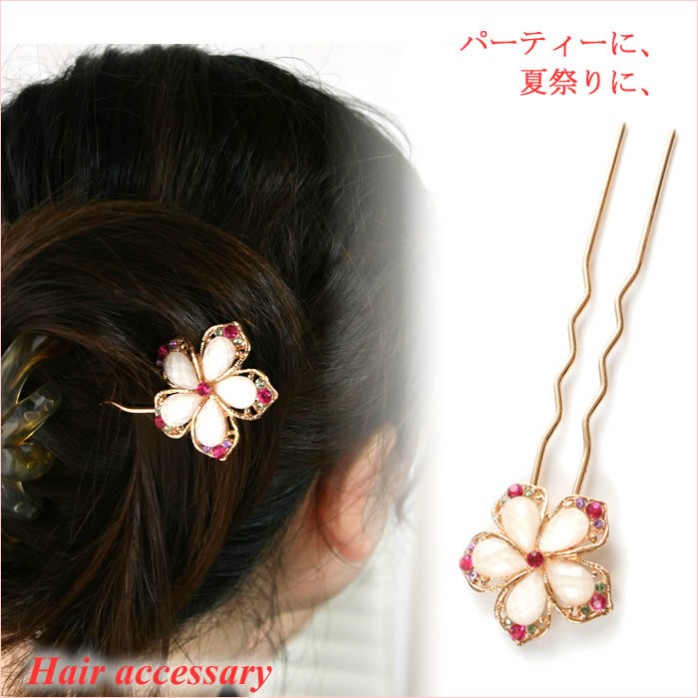 ◆素材◆合金◆サイズ◆ピン全長:約10cm花モチーフ:約3cm◆特徴◆キラキラのラインストーンで飾られたフラワーモチーフのUピンまとめ髪に、飾りに大活躍浴衣を着たときの髪飾りに、お呼ばれのお洋服に合わせてなど、使い道が沢山。ファッションのアクセントにもピッタリです。◆注意◆多少の誤差やモニターの性能によるお色の違いがある場合がございます。ご了承の上お買い求めください。