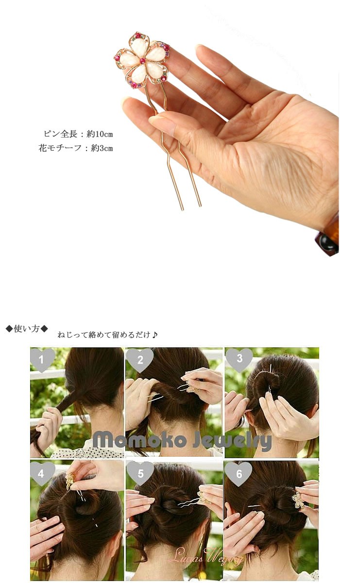 | ヘアアクセサリー 結婚式 クリップ かんざし ラインストーン Uピン ユーピン 花 フラワー |