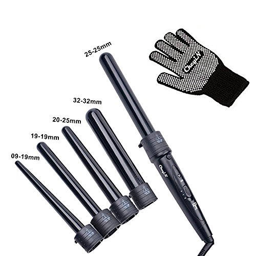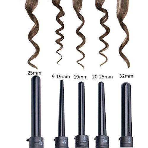Ckeyin174; 5 in 1 Multifunction Interchangeable Ceramic Hair Curler Iron Tong Salon Professional Wave Tapered Curling Wand Hair Styling Tool curler Kit (Black)