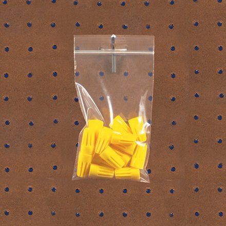 - Prepunched hole in the lip of the bag allows bags to be hung