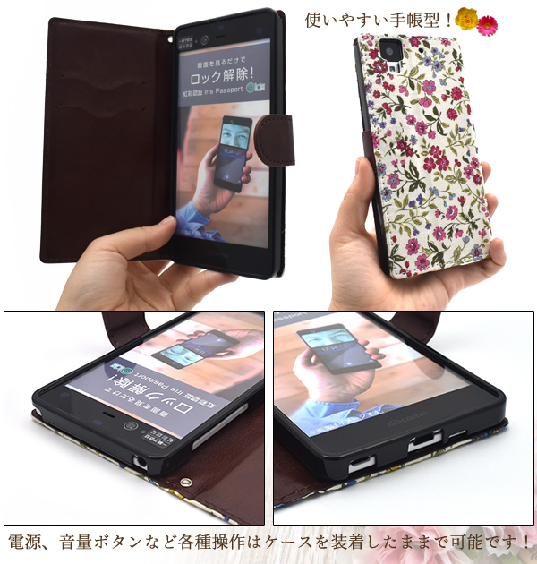 arrows NX F-01J用の様々なの花が散りばめられたリバティプリント生地を使った華やかなケースです。
