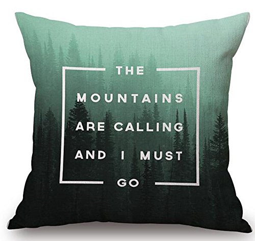 Nordic Geometric Green Pine Forest The Mountains Are Calling And I Must Do Cotton Linen Home Throw Pillow Case Personalized Cushion Cover NEW Home Office Indoor Decorative Square 18 X 18 Inches