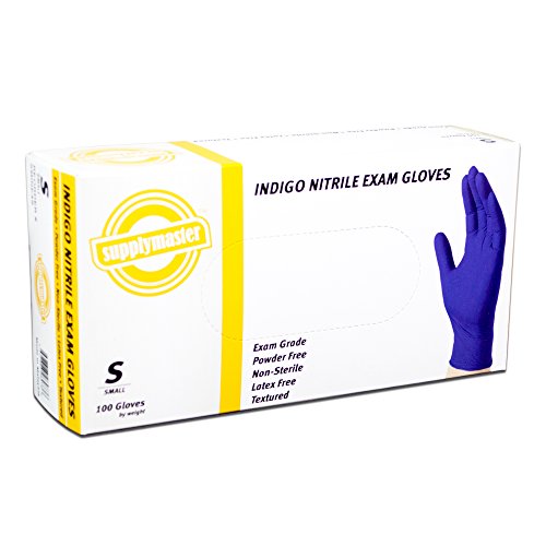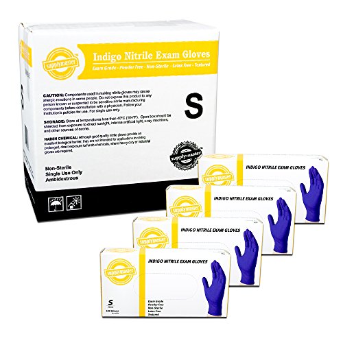 SupplyMaster - SMINE4S - Exam Nitrile Gloves - Disposable, Powder Free, Exam, 4 mil, Small, Indigo (Pack of 400)