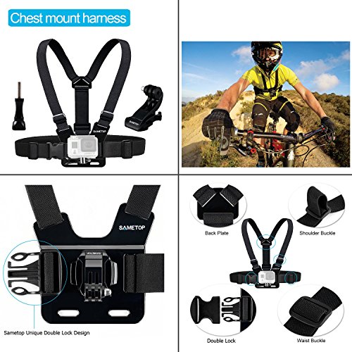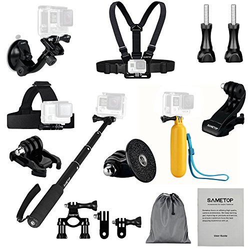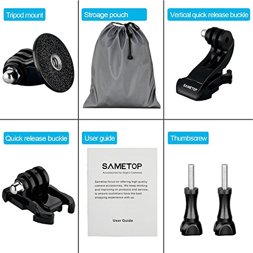 Sametop 11 in 1 Accessories Kit for Gopro Hero 5, 4, Session, 3+, 3, 2, 1 Cameras; Suitable for Mountain Biking, Skiing, Snowboarding, Diving and Other Outdoor Sports (Including User Guide)