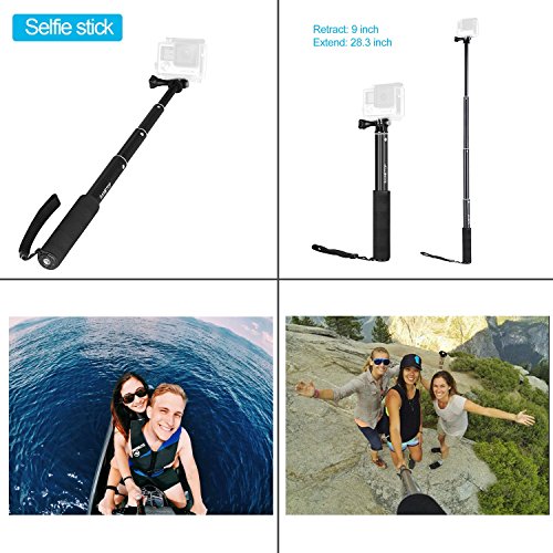 Selfie Stick & Floating Hand Grip: Selfie stick - adjusts the pole length with lock system, lightweight and portable; Floating hand grip - Compact and lightweight, makes you easy spotting and retrieval.