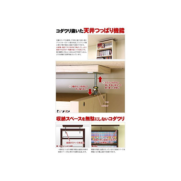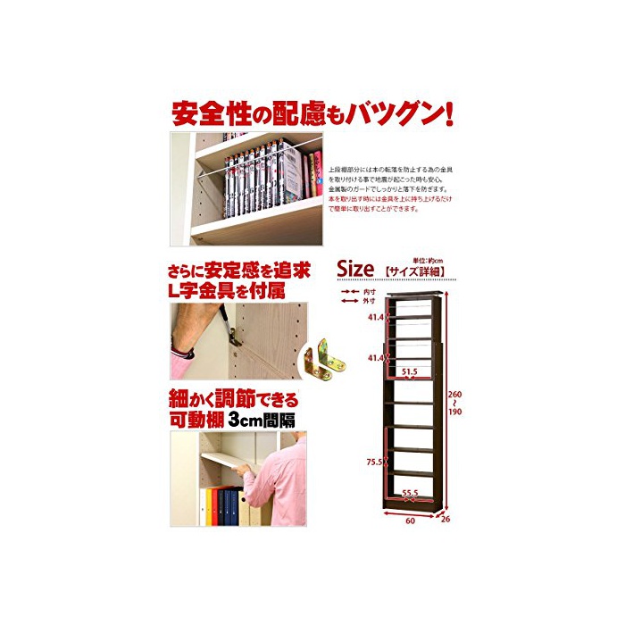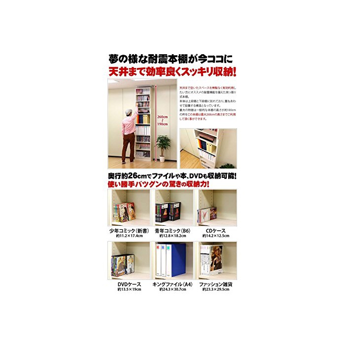 원본상품명: クロシオ 耐震 ?深 天井つっぱり書棚 ホワイトオ?ク 幅600x?行260 A4本棚 高さ1900~2600mm