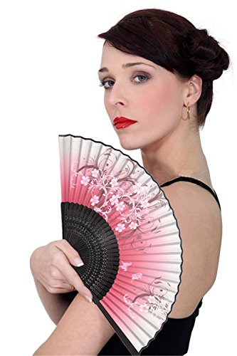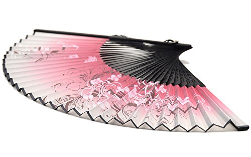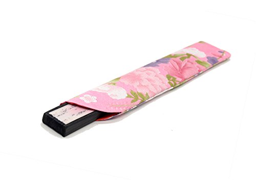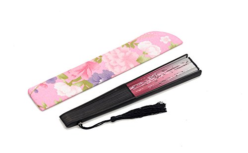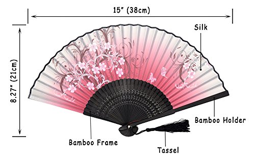 LeeHome Chinese / Japanese Style Female Hand Folding Fan -- With a Fabric Sleeve -- Silk " Oriental Cherry Butterfly " Pattern (Red)