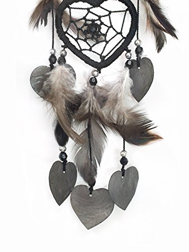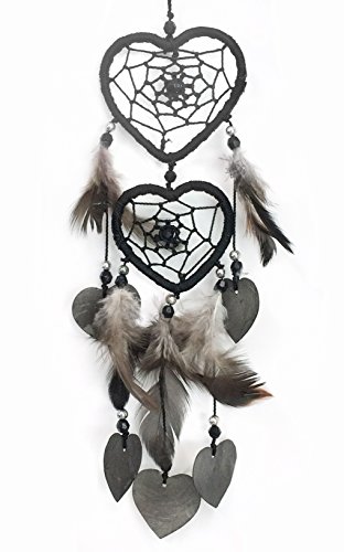 PEPPERLONELY Dream Catcher Heart Shape Black Feathers 2.5x2 Inch Heart, 13 Inch Long