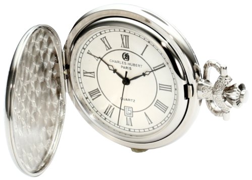 -. Title : Charles-Hubert, Paris 3922 Classic Collection Chrome Finish Brass Quartz Pocket Watch