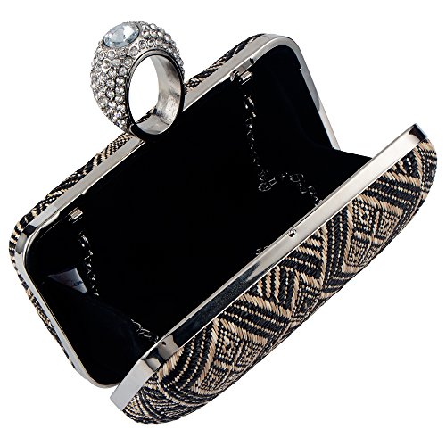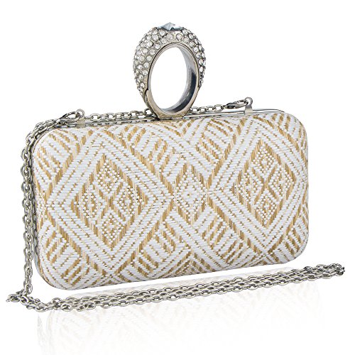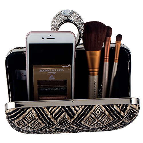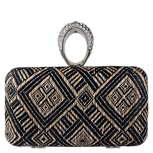 -. Title : Bagood Women's Straw Weaving Square Shape Knuckles Evening Bag Hard Case Clutches Purses
