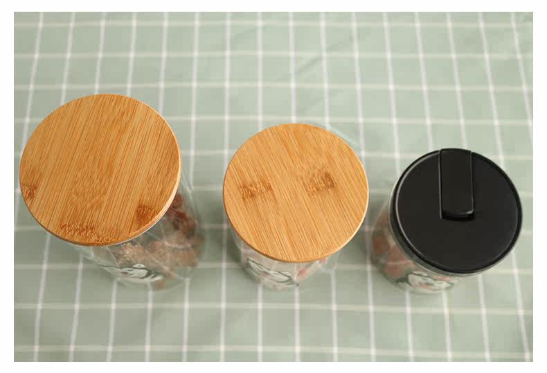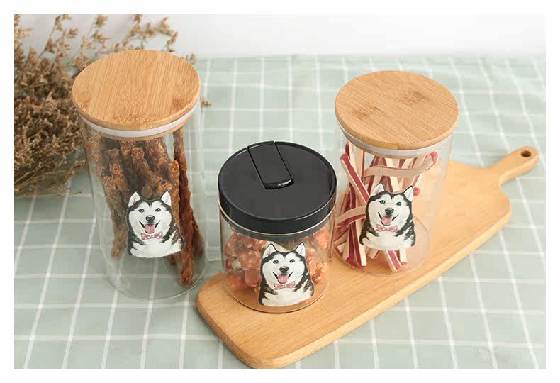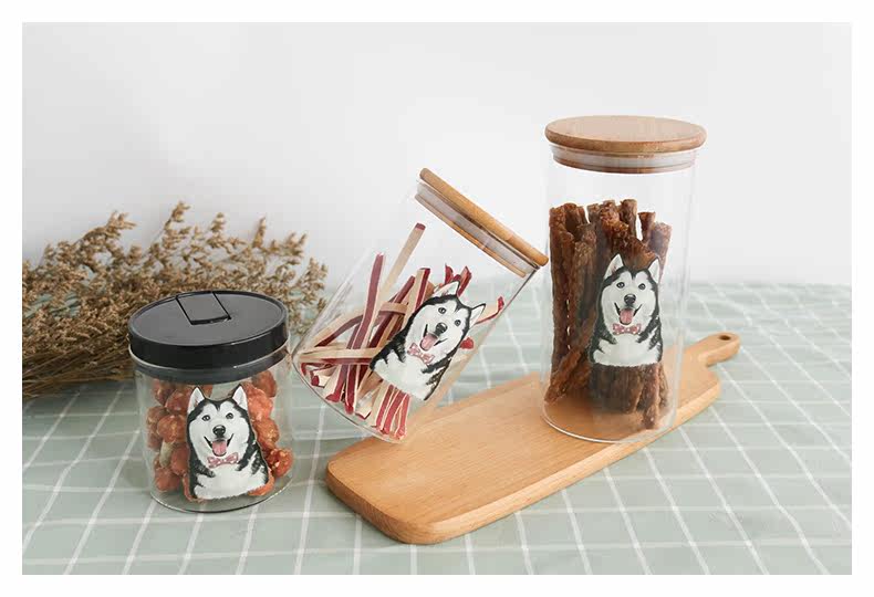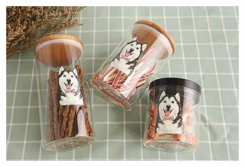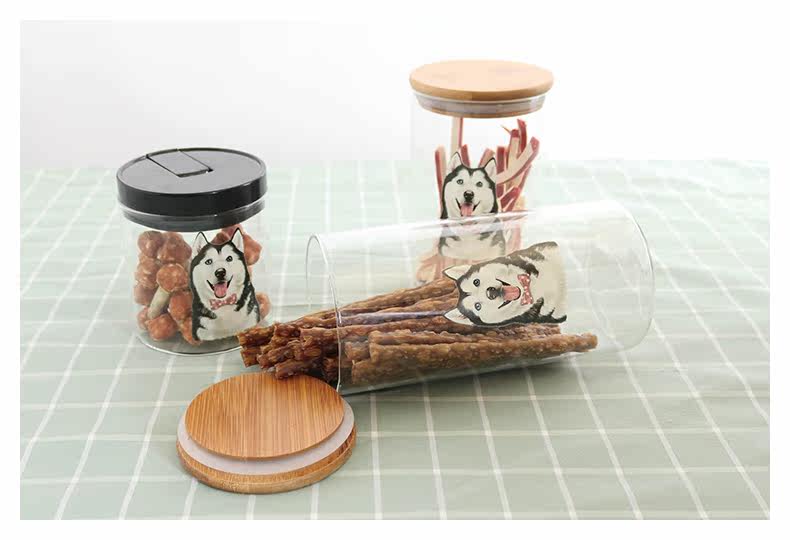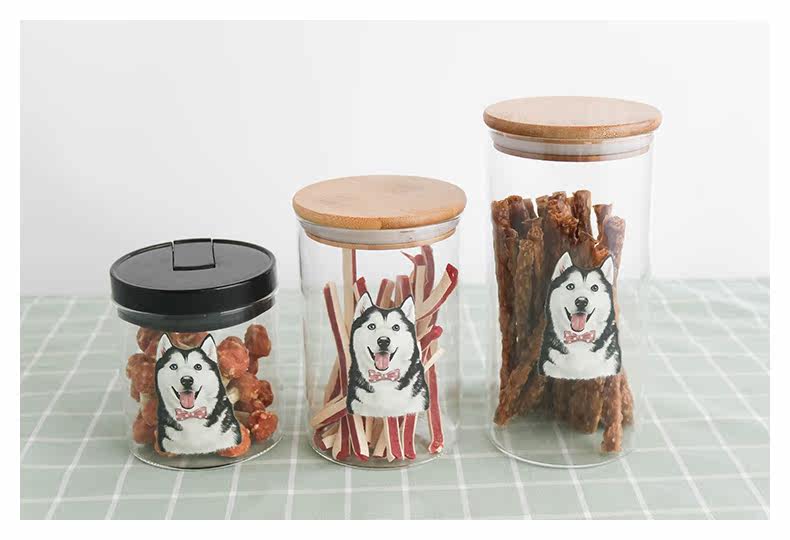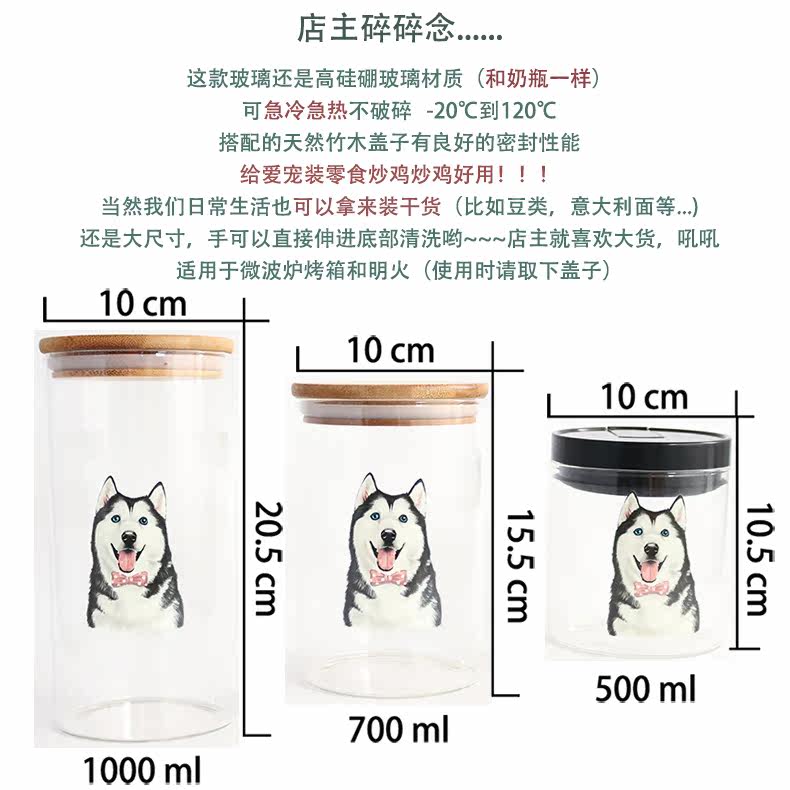 哈士奇红色系列密封罐玻璃储物罐透明玻璃瓶子零食竹木盖玻璃罐子