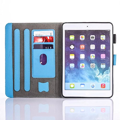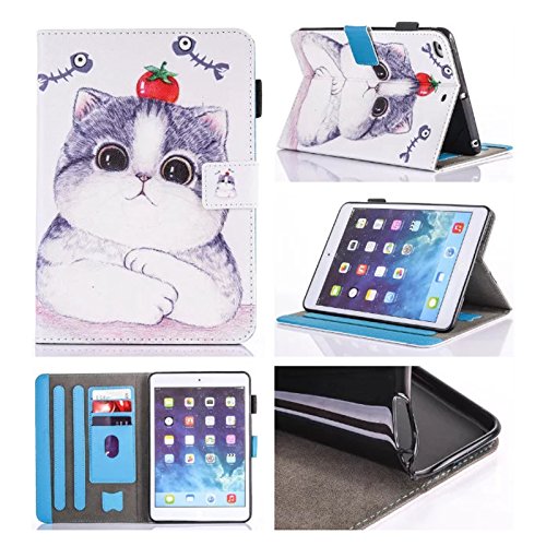 iPad Mini 1/2/3/4 Case Stand Case Perfect Smart Auto Wake/Sleep [Magnet Closure] REASUN Colorful Cover Flip Folio Cards Slots Wallet Case For iPad Mini 1/2/3/4 (Cat)