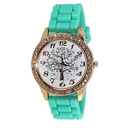 -. Title : Souarts Womens Mint Green Silicon Band Life Tree Pattern Dial Quartz Analog Wrist Watch 24cm