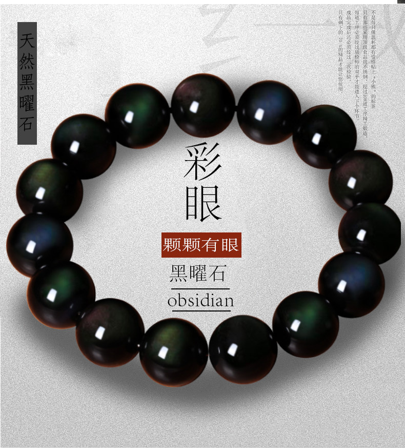 天然彩虹眼黑曜石手链男士女黑耀石手饰佛珠貔貅手串首饰手珠