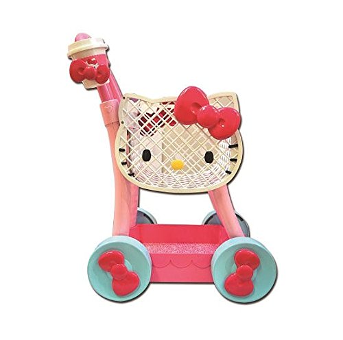 It's time to go shopping with Hello Kitty! The Hello Kitty Shopping Cart lets you shop in style with the iconic Hello Kitty head shaped cart, bow decorated wheels and plenty of room to load in all of your goodies! It comes with a fold down seat to bring along your favorite Hello Kitty friend. And no shopping trip would be complete without a nice cup of coffee. The shopping cart comes with a snap-on cup holder and the cup with lid to be just like a real coffee cup. The shopping cart features a fold down handle.Feature