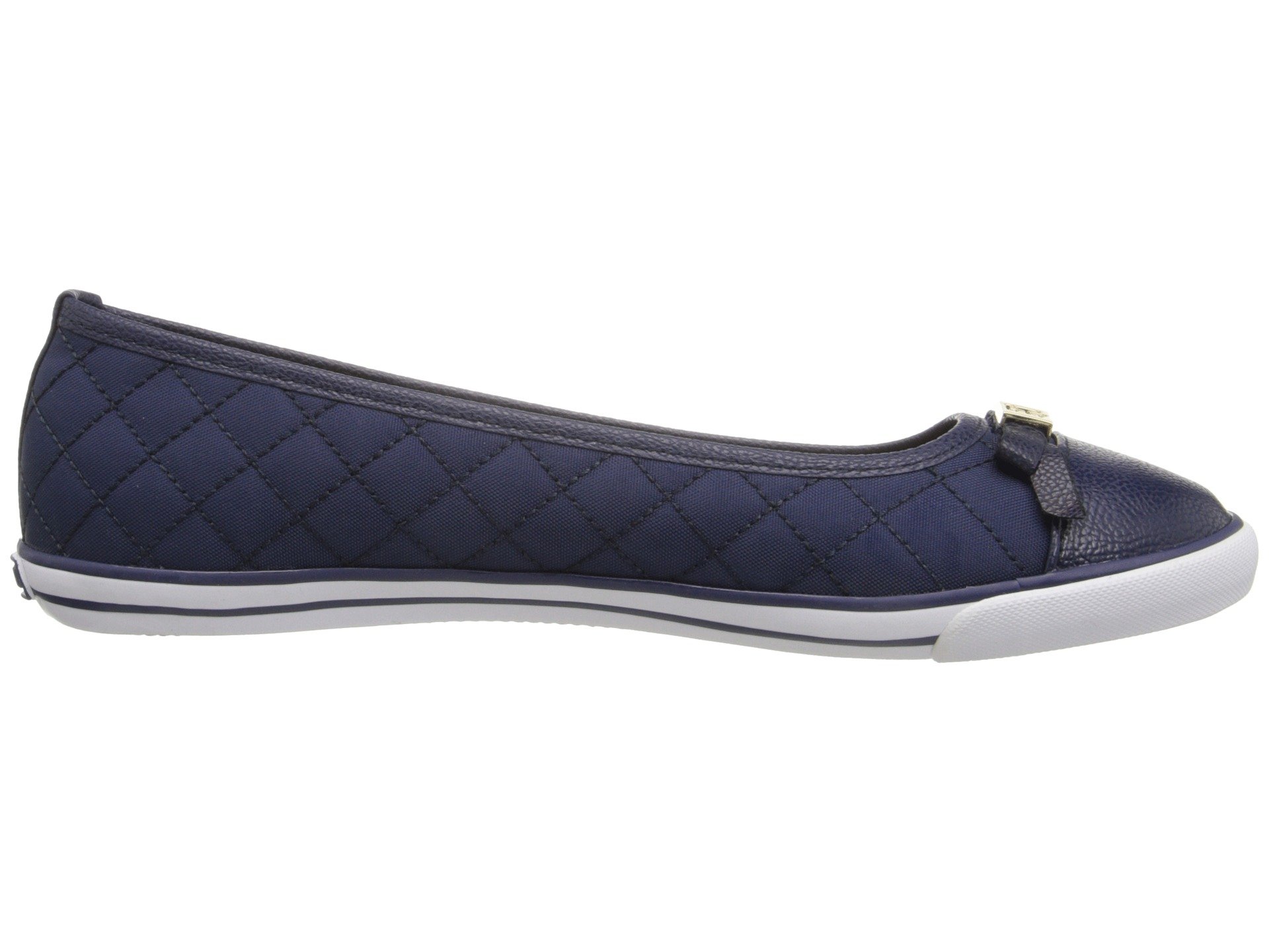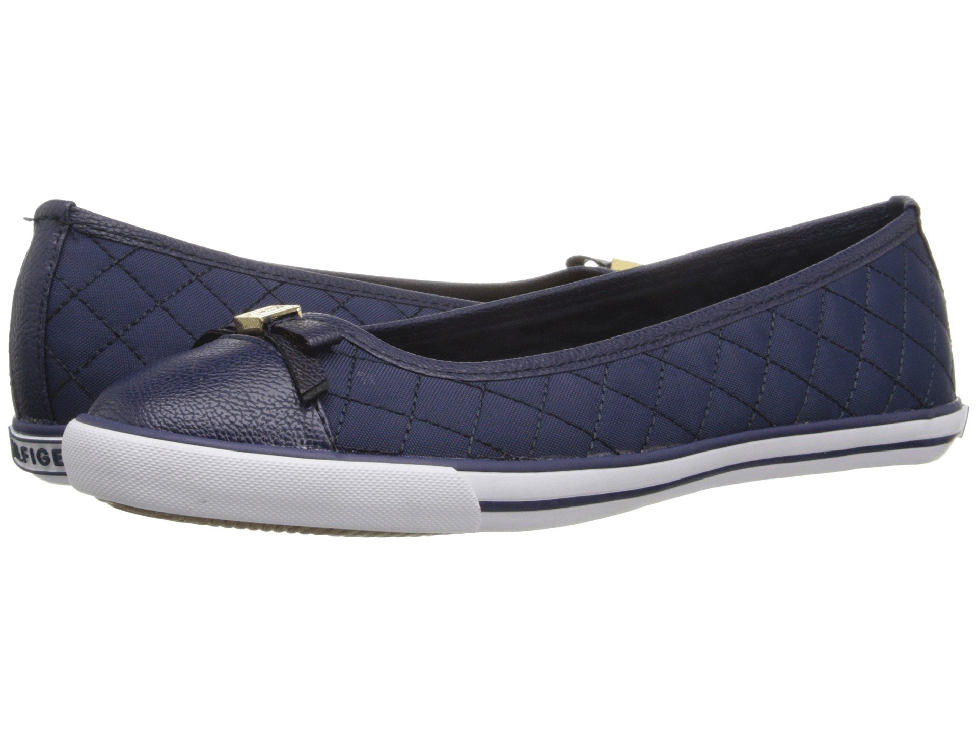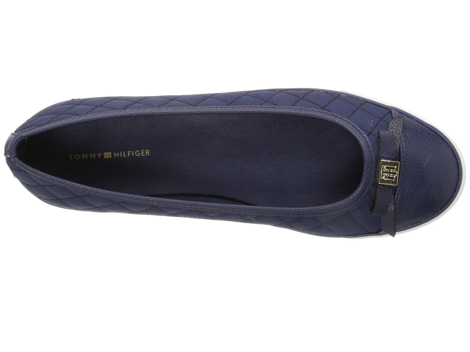 | Product Information SKU: #8858664A cool and casual look for the perfect dressed down look, the Tommy Hilfiger™ Beth flats.Easy slip on wear.Upper made of quilted textile and synthetic material.Lining made of textile.Lightly cushioned insole.Signature logo hardware detail at toe.Synthetic sole.Imported.Product measurements were taken using size 8.5, width M. Please note that measurements may vary by size.Weight of footwear is based on a single item, not a pair.Measurements: Weight: 11 oz |