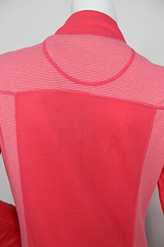 This pink color block reversible sweater by Tommy Bahama is crafted in a breathable cotton blend knit, is designed with a custom fit silhouette and features a zipper fastening mock neck, striped front&back side panel and yoke, in-set long sleeve, banded cuffs and hem and is enhanced with cover stitch sewingFeature
