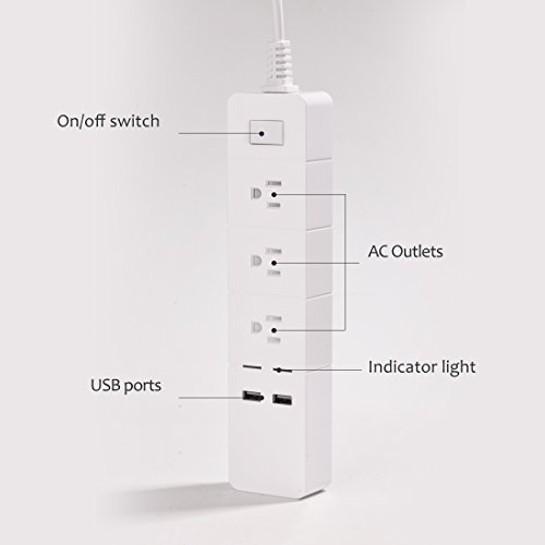 MULTI-OUTLET FUNCTION: The Wowfeel smart power strip has 3 surge-protected AC outlets and built-in 2 USB charging ports(2.6A). USB port works independently.