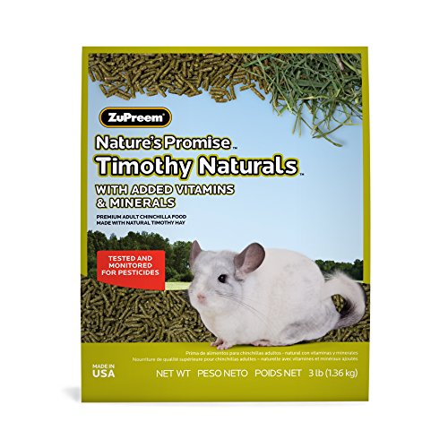 High-fiber daily nutrition for adult pet chinchillas. Tested and monitored for pesticides and made with weed-free timothy hay for healthy digestion. Contains flaxseeds for healthy skin and coat.