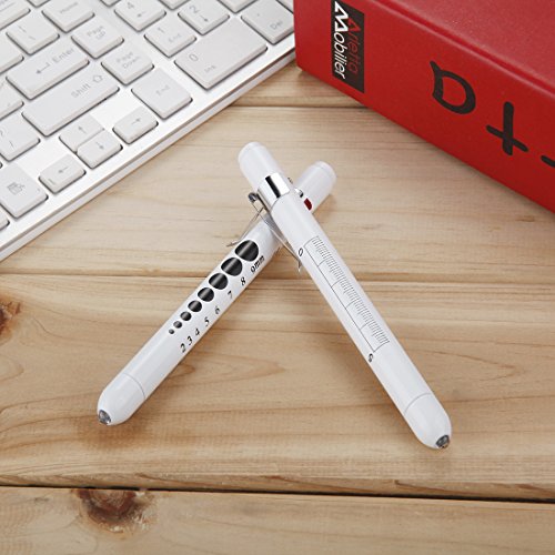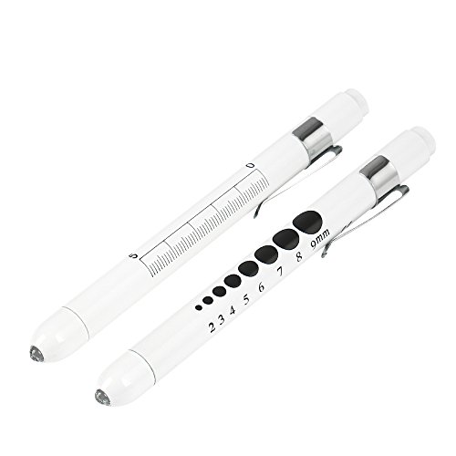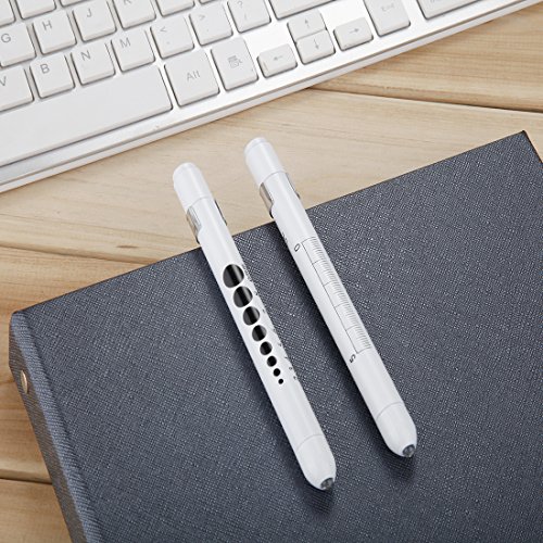 Kimilar 2 Pieces Nurse Penlight LED Medical Pen Light with Pupil Gauge for Nurses Students Doctors Stethoscope Healthcare with 4 Pieces Durable AAA Batteries, White Light