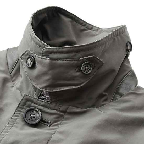 - 카라 밴드부분 가죽 배색과 브랜드 레터링 음각으로