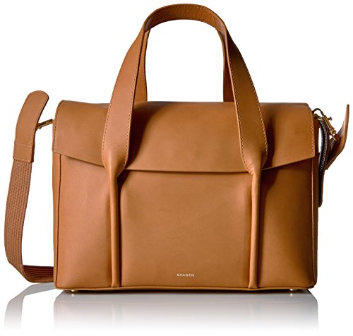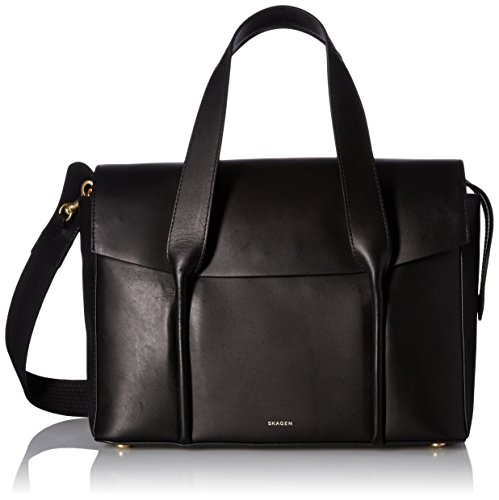 -. Title : Skagen Beatrix Leather Flap Satchel-Black