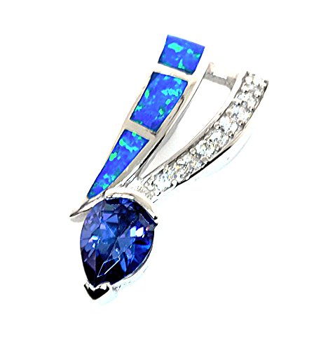 -. Feature : Pendent:28mm(1.12 inch) length and 12mm(0.48 inch) Width and 5mm height / Sterling Silver Pendent with Simulated Cubic Zirconia / Sterling Silver Pendentl with Created Opal / Sterling Silver 16"long+2" extension Box Chain with SP.R.Ing Loop Clasp / black velvet jewelry gift box included
