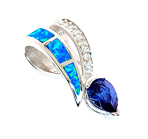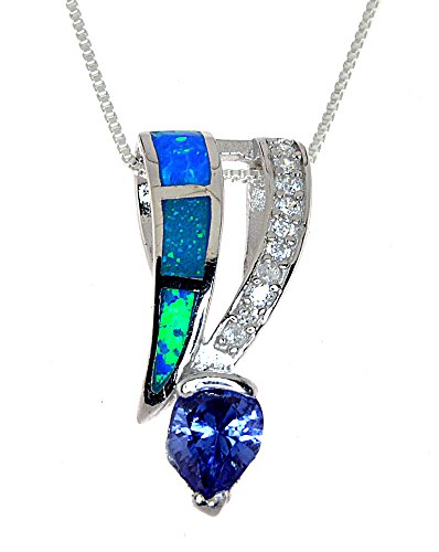 -. Title : Sterling Silver Created Opal and Simulated Tanzanit Necklace