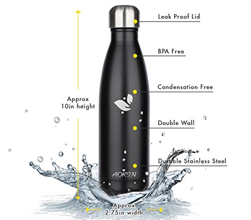 Aorin 17oz Double Wall Vacuum Insulated Stainless Steel Water Bottle to keep your drinks hot and cold Perfect for outdoor sports camping mountain bike.