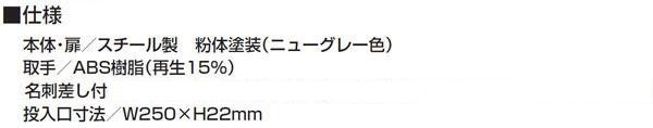 | オフィスにぴったりのメールボックスです。天面両側には壁固定用のハーフパンチ加工を施しており壁固定金具(TKU-2/別売)や床固定金具(YKU-2/別売)を使用することで壁や床面に固定し、転倒を防止することができます。環境にやさしい紛体塗装仕上げで、錆びや傷に強いのが特徴です。 |