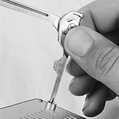 - Feature : With the utili-key, you can open bottles, packages, letters, and most screws / Polished stainless steel finish / Multiple screwdrivers, including a flat screwdriver, Phillips screwdriver, and micro-sized screwdriver / Also includes a bottle opener, straight blade knife, and serrated blade knife / Light weight and small size makes it a great gift