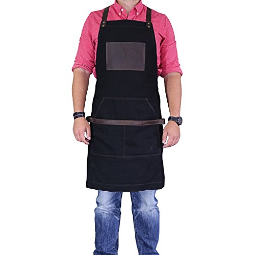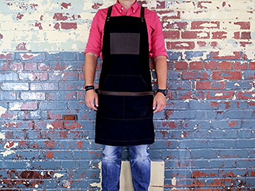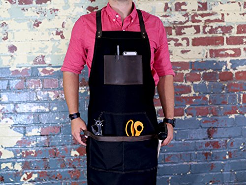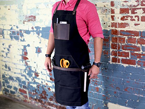 The full grain leather and canvas cross straps are adjustable so the apron fits most waist sizes.