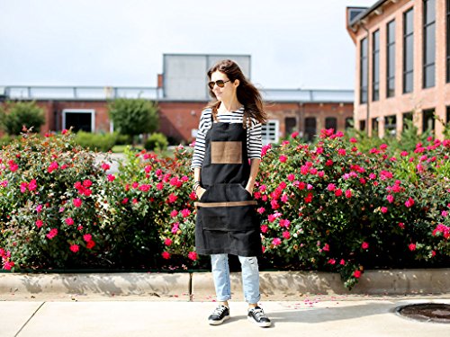 The stylish and functional apron is handmade using a combination of durable non-waxed canvas and crazy horse full-grain leather.
