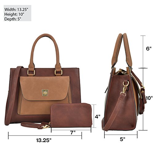 -. Feature : ☆ ☆ MMK COLLECTION BRAND NAME FEEL:USA Brand (Imported) ~ This Classic New Fashionable Women Satchel Handbag Set using high-quality Faux Leather, with all stitches in neat and orderly rows. We have always been strict with both the choosing of materials and processing of products, in other words, we are better at material selection and superior in product making, taking every detail into consideration for the dear customers to meet as much as possible their own styles. / ☆ SPECIOUS RETRO COLOR DESIGN AND SERVICE: High Quality Leather-Like Material with Soild Trendy Color, Decorate with Coffee Color Front Twist Lock pocket. This satchel is not just extremely Classic Business Style but also Multi-Functional! Handbag by Macro M. Kelly collection.Our goal is to ensure that you're 100% satisfied with your purchase right out of the box. If you're not satisfied for whatever reason, we will gladly accept your return provided that you request authorization / ☆ EXCELLENT SIZE FOR AS BUSINESS BAG OR DAILY CARRY: Approx Size: 11"W x 14"H x 6"D + FREE Matching Wallet Size: 7"W x 4"H x 1"D, This Women Satchel is extremely roomy to fit most of your everyday essentials. Suitable for women or girls as business handbag, laptop bag, or daily carry. Classic design is perfect for Business Lady, perfectly hold your Small Size Laptop, iPad, iPhone, A4 File and notebook. / ☆ MULTI-POCKETS TO COMFORT YOUR LIFE: Top Zipped closure + Interior back wall zipped pocket + Interior front wall open top pouch pockets + DRolled Faux Handles + Fully-Lined Fabric Interior + Exterior Back Panel Zipper Pocket + Extra Front pocket with twist lock closure + Gold-Tone Hardware, accents, bottom studs and zipper pulls + Adjustable and removable shoulder straps / ☆ LIMETED EDTION - Macro M.Kelly Handbag Collaborative Design (This's not associated with brand)
