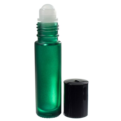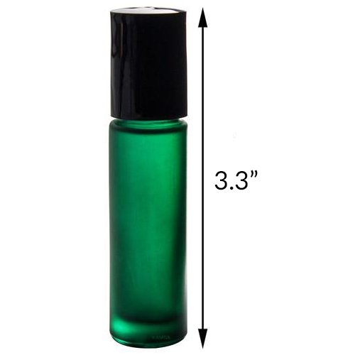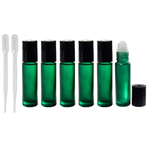Frosted Green Glass Essential Oil Travel Roll-On 10 ml /.33 oz (6 Pack) + Travel Bag and 2 Pipettes (3 ml) for Aromatherapy, DIY, Perfume, Home and Travel