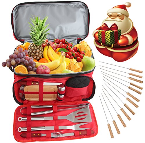 Insulated cooler bag - Once you decide to be out, you don't need to look for any kitchen tools everywhere. This set covered all bases! What's more, there are multiple pockets around the bag, including 2 on the sides, and 2 on the back. These pockets are built for convenience, and will house your quick grab items. So you can set up the BBQ and starting grilling right away with this durable insulated cooler bag.
