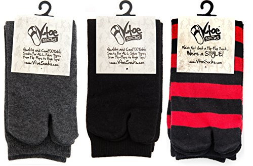 -. Feature : V-Toe, we're not just a flip flop sock....we're a Style! / 3 Colors Crew Comfortable Tabi Socks For Everyday Use / Wear Your Flip Flops All Year Long & Keep Your Toes Warm / Perfect For Every Outfit & Your Flip Flops / Fits Shoe Size: Womens 5 - 10.5 Men 4 - 10