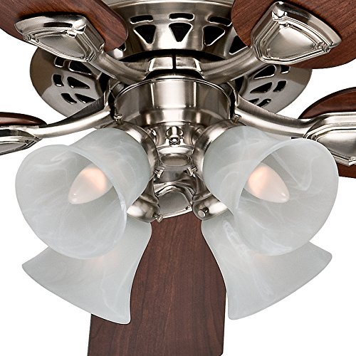 The beautifully detailed patterns on the motor housing are what make this fan stand a step above its peers. Traditional style gets an elegant makeover, and you can be sure this fan will live up to its looks. The 52-inch blade span cools large rooms with ease, and the exposed bulbs with keep your space looking bright and refreshed.