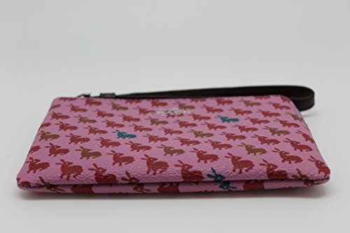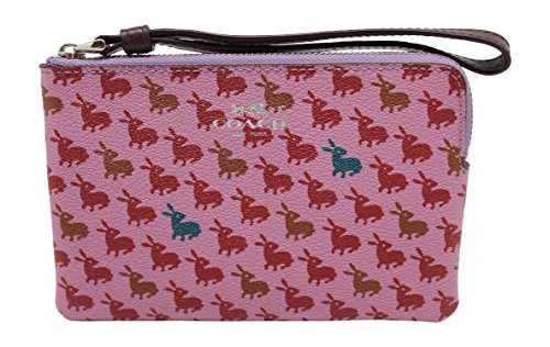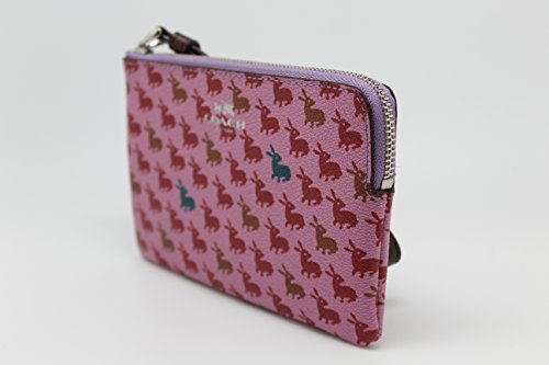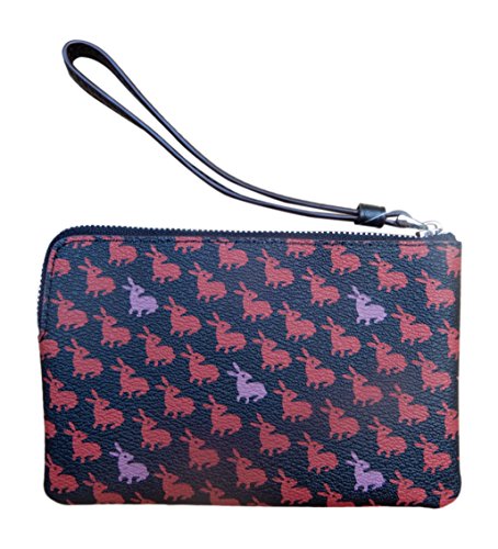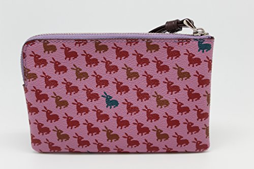-. Feature : Bunny P.R.Inted coated canvas / Interior features 2 credit card slip pockets / Corner zip closure with attached leather wristlet strap / Approximate dimensions: 6.25" x 4" x .5" / Imported