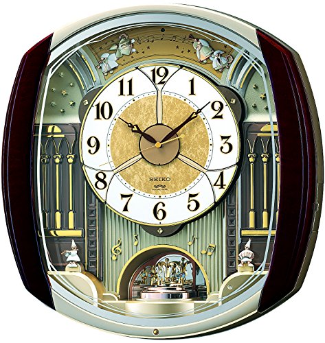 -. Title : セイコー クロック 掛け時計 電波 アナログ からくり 6曲 メロディ 回転飾り 濃茶 マーブル 模様 RE564H SEIKO