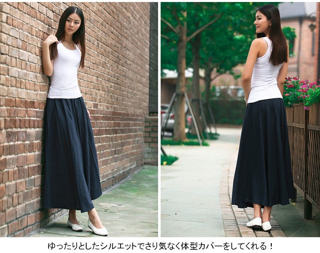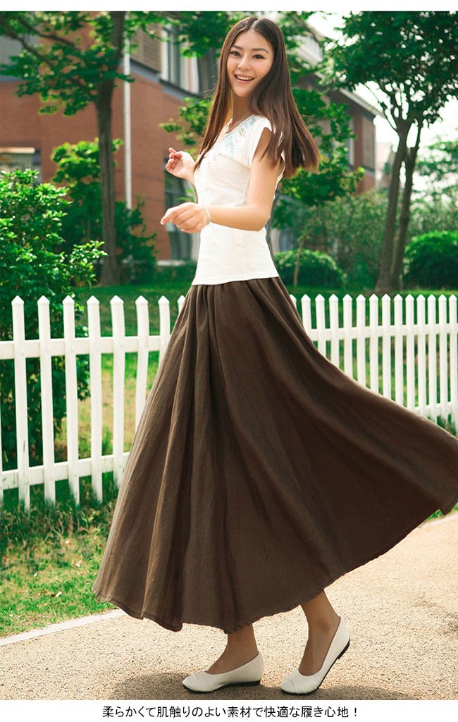 | 商品名 | リネンスカート 棉麻スカート マキシスカート レディース 森ガール風 ロングスカート マキシ丈 無地 ゴム入りウェスト 薄手 夏秋 |