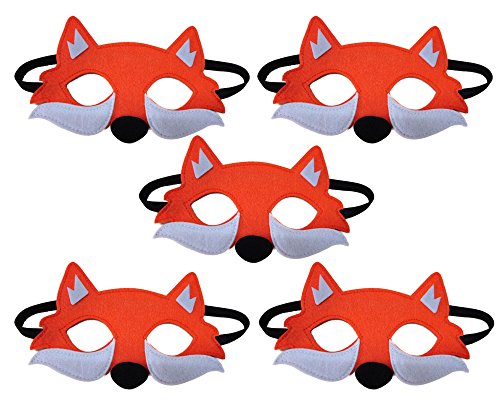 Feature : Soft and durable felt fox mask for kids, set of 5 / Size: Free. For 4-10 years old / With a rubber band / Perfect for party, halloween , play / Hand wash. Cool water.