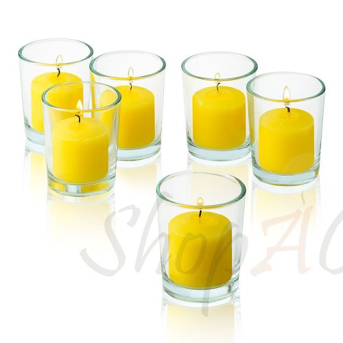 - Title : 10 Hour Citronella Yellow Votive Candle With Clear Glass Holders Set Of 24