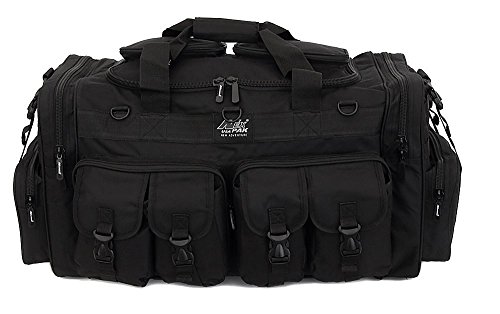 -. Feature : Purchase includes Lanyard (color varies) for carrying items such as keys, ID tags, etc... / Material: 600D High Density Polyester for daily durable use. Interior water proof PVC lining provides protection from water. Excellent storage: 4 front buckle strap pockets, 2 large zippered front pockets, U-shape opening main compartment, 2 zippered pockets on top of main compartment flap, 2 side zippered pockets on each side / Attachment points: molle strap system on sides, 3 front D-rings, 2 side (4 total) buckle snap load compression/hangstraps / Removable adjustable shoulder strap with pad; Heavy duty branded zippers; main handle has wrap-around velcro strap for better grip / Dimensions: 30"L x 14"W x 12"D; Ideal use: military, tactical Assault gear, hiking, hunting, camping, sports & gym