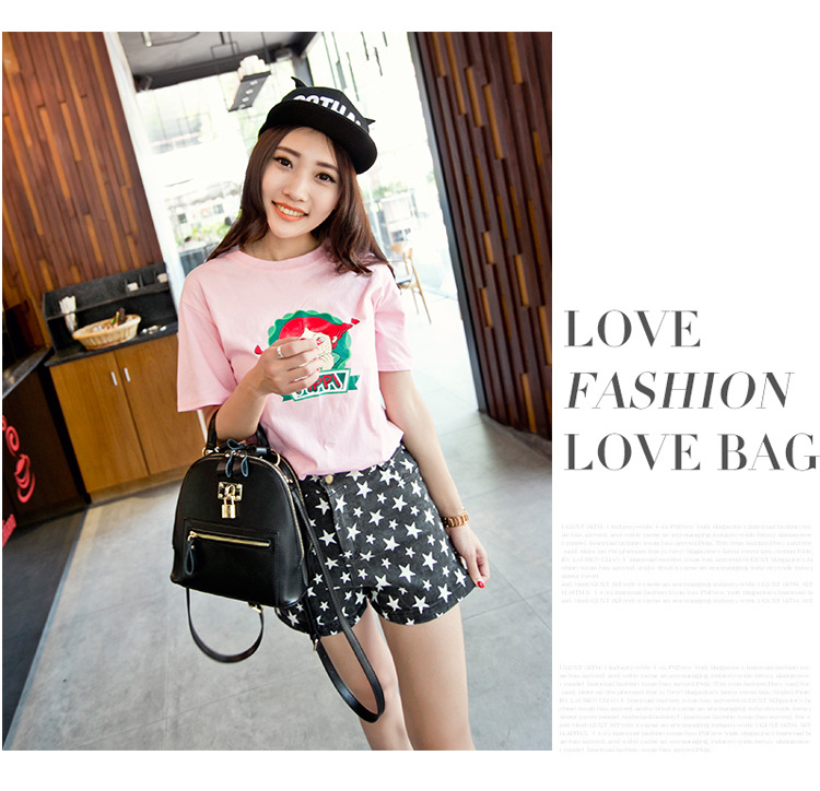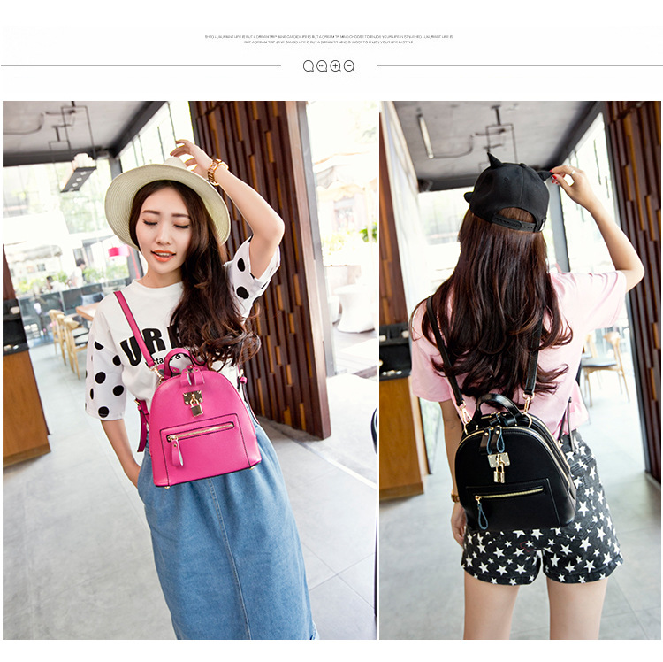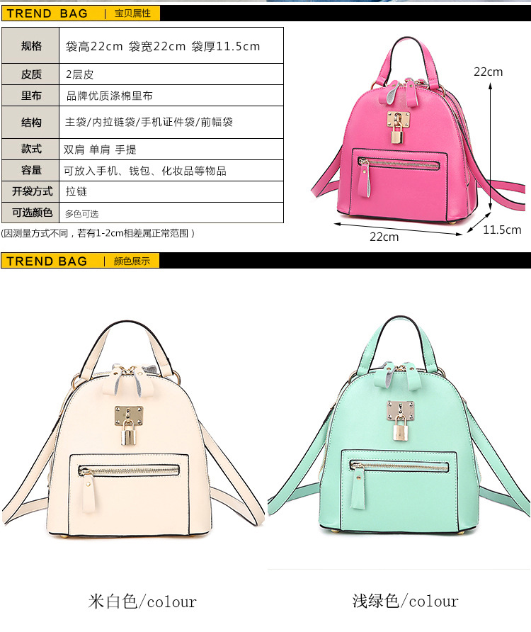 2015夏韩国牛皮女包甜美学院小锁牛皮机车复古女包双肩包书包小包